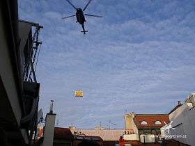 Transport velkoplošné TV vrtulníkem kabaretu Darling, Praha