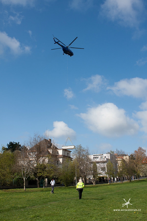 Doprava rozměrného bazénu na zahradu za domem na pražské Hanspaulce pomocí našeho vrtulníku byla dokončena do 10 minut.