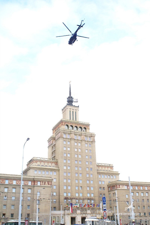 Vrtulník Mi-8 usazdil klimatizační jednotku na věž hotelu Crown Plaza.