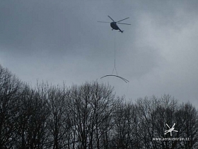 Přemostění říčky Smědá vrtulníkem Mi-8