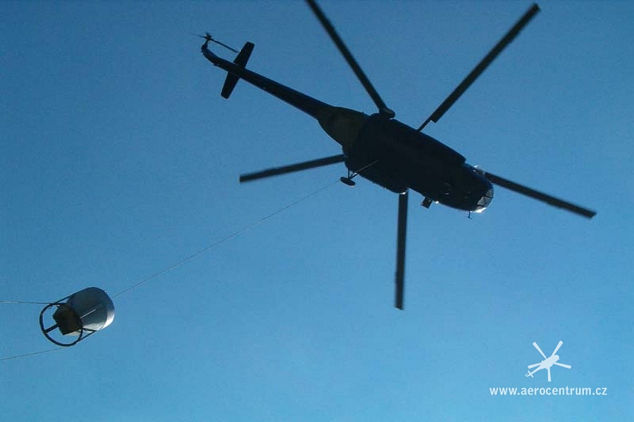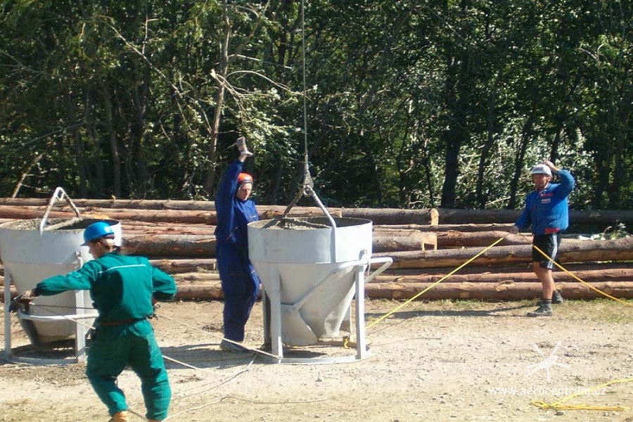BETONÁŽ PATEK SLOUPŮ LANOVKY NA ŠPIČÁKU VRTULNÍKEM MI-8