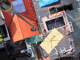 Na terasu domu v Opletalově ulici v Praze byla instalována vířivka vrtulníkem Mi-8