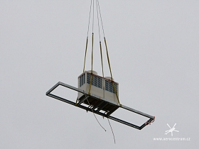 Vynesení jednotek klimatizace na střechu budovy České Spořitelny na Pražském Vítězném Náměstí.