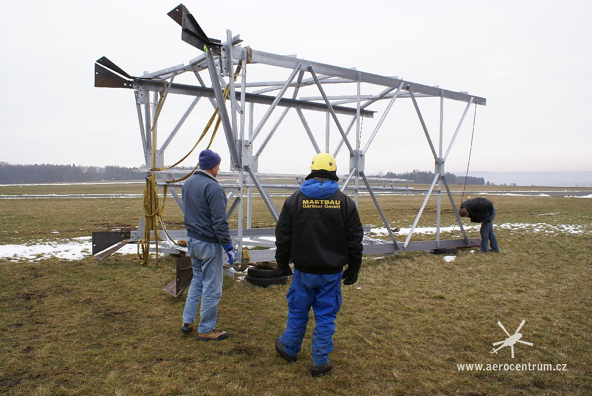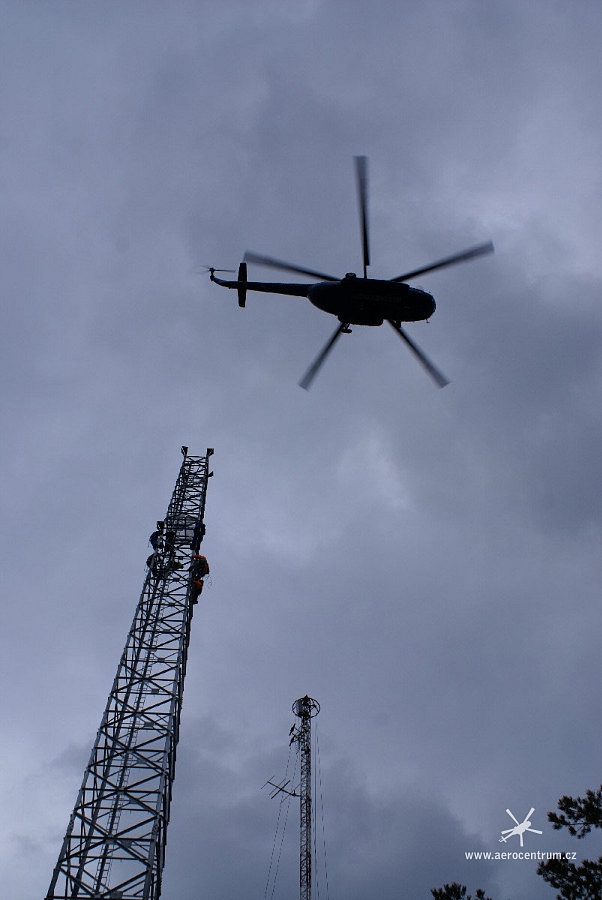 Montáž stožáru VVN vrtulnikem, Německo Jena