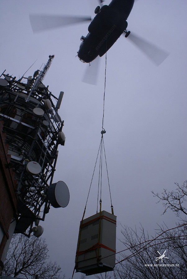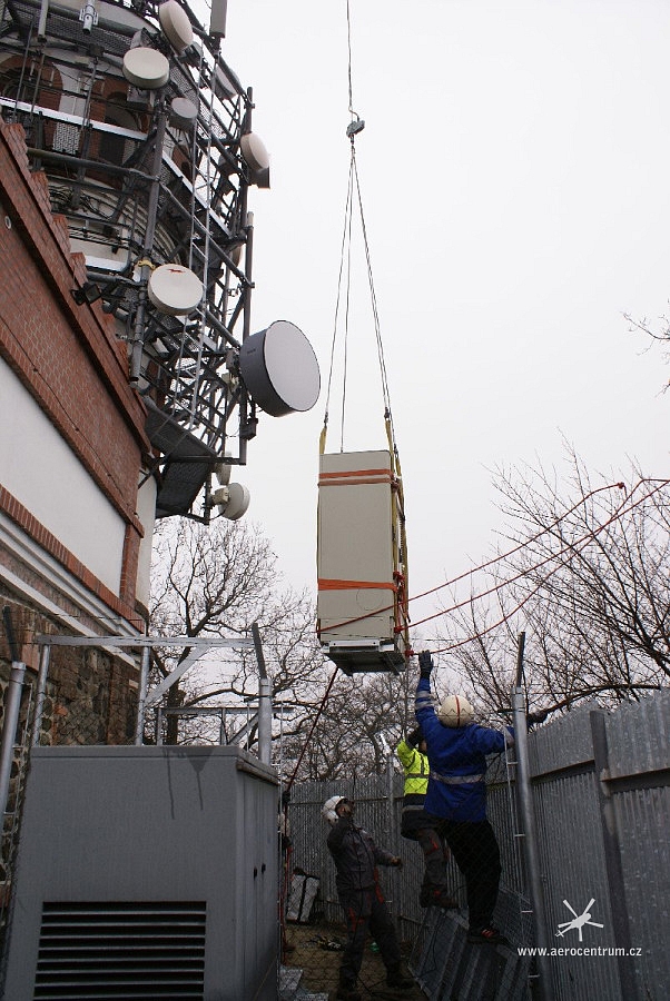 Transport a montáž BTS k patě stožáru vrtulníkem, Špičák u České Lípy